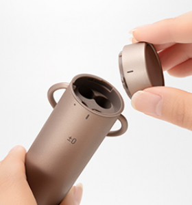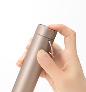 上部のキャップを回し開け、単4形アルカリ乾電池を4本入れます。4本で約30分間使用できます。