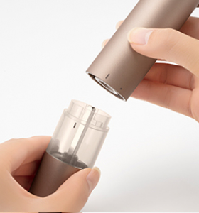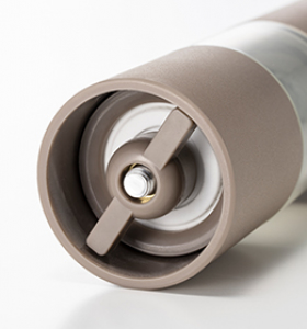 本体天面を押すと挽きたての塩やこしょうが自動で出てきます。押している間だけ稼働します。