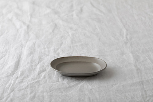 九州の歴史ある波佐見地区で作陶された半磁器の器シリーズです。土の風合いや手触りを感じられる一方で、磁器の硬さ、堅牢さもあり、普段使いのできる使い勝手の良さが特長です。金属感のある深みのある黒と半磁器素材がフチからのぞく明るいグレーの2色で、食卓の風景に合うベーシックなカラーで展開しています。落ち着いた表情の半光沢の質感を持ち、洗った後の油切れも良く、毎日の使用に最適です。深さをもった形状とリム部分に丸みを持つオーバルプレートは、汁気の多い料理でも少ない料理でも、幅広い料理を引き立てて盛り付けできる、汎用性の高い形状です。