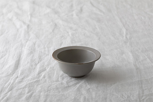 九州の歴史ある波佐見地区で作陶された半磁器の器シリーズです。土の風合いや手触りを感じられる一方で、磁器の硬さ、堅牢さもあり、普段使いのできる使い勝手の良さが特長です。金属感のある深みのある黒と半磁器素材がフチからのぞく明るいグレーの2色で、食卓の風景に合うベーシックなカラーで展開しています。落ち着いた表情の半光沢の質感を持ち、洗った後の油切れも良く、毎日の使用に最適です。ボウルはリムと高台があり、熱い汁物も持ちやすい形状です。料理に合わせた程よい大きさと深さのラインナップで、様々な料理に対応し、汎用性の高い形状となっています。
