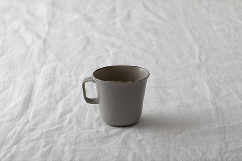 九州の歴史ある波佐見地区で作陶された半磁器の器シリーズです。土の風合いや手触りを感じられる一方で、磁器の硬さ、堅牢さもあり、普段使いのできる使い勝手の良さが特長です。金属感のある深みのある黒と半磁器素材がフチからのぞく明るいグレーの2色で、食卓の風景に合うベーシックなカラーで展開しています。落ち着いた表情の半光沢の質感を持ち、洗った後の油切れも良く、毎日の使用に最適です。マグカップは毎日使いのサイズとして、たっぷりの容量を注げます。オーバル形状だから容量が大きくてもコンパクトに見え、収納にも場所を取りません。また持ち手を気にせず重ねて置けるのも特長です。