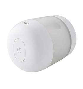 1秒以上の長押しで電源ONになります。動作中はコネクタ差し込み口の脇の表示ランプが白く点灯します。安全の為スイッチを入れてから1時間経過すると自動停止します。