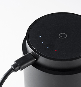 付属のUSBケーブルで充電します。コードがないからアウトドアや野外にも気軽に持ち出せます。