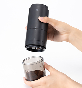本体天面の電源ボタンをトントンと指で2度を押すと自動で挽き始めます。挽き終わると自動で終了するので手離れがよく便利です。