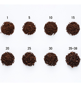 1~38のダイヤル式でガイドにお好みの数字を合わせます。1は極細挽き、数字が増える毎に粗挽きになっていきます。15~20が一般的な中細挽きとなります。