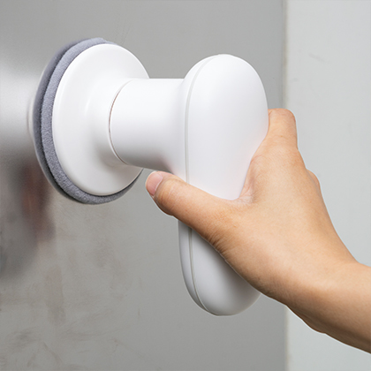 モップパッドは水拭き乾拭きが必要な場所に重宝します。窓や洗面台周りなど日々のちょっとした掃除に。重さわずか380g(本体)、握りやすくデザインされた本体は腕を上げての掃除も疲れにくいのが特長です。