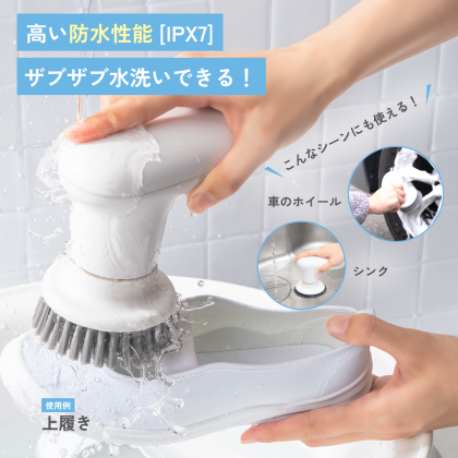 稼働時に力を入れても止まらないハイパワーなモーターを採用しました。浴室の床、子供の上履き、車のホイール汚れなど、手元の動作がちょっと楽になります。