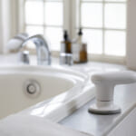洗面所や浴室の掃除もできる高い防水機能が特長です。(IPX7:常温の水道水、かつ静水の水深1mで約30分間放置後、動作に問題がないこと)