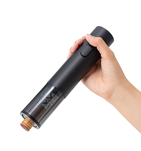 大きな縦長のスイッチの下部を押すと、コルクにスクリューが入りコルクを抜いていきます。コルクが抜け切ると自動で回転が止まります。スイッチの上部を押すとスクリューが逆回転しコルクが外れます。初心者でも迷わず簡単に操作ができます。