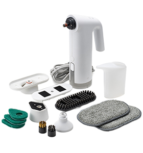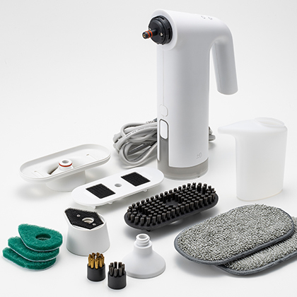 高温のスチームで洗剤を使わずに家中の掃除ができる、ハンディタイプのスリムなクリーナーです。100℃以上の高温スチームがたっぷり噴射、頑固な汚れを浮き上がらせて強力洗浄します。5種類のアタッチメントでキッチン周りや電子レンジ、お風呂の床はもちろん、クロスパッドを使えば衣類スチーマーとしても使えます。