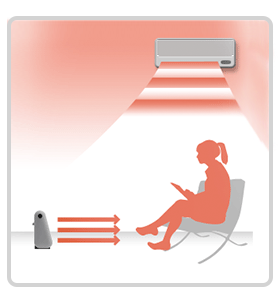 直線的に熱を届けるから、エアコンでお部屋全体をあたためた後に使うと効果的。足もとがちょっと寒い時に補助的に使うと便利です。