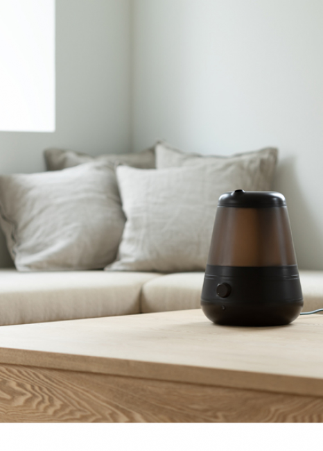 ミストの量はスイッチを回しながら調節、お好きな香りが楽しめるアロマトレー付き。