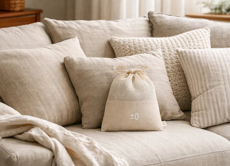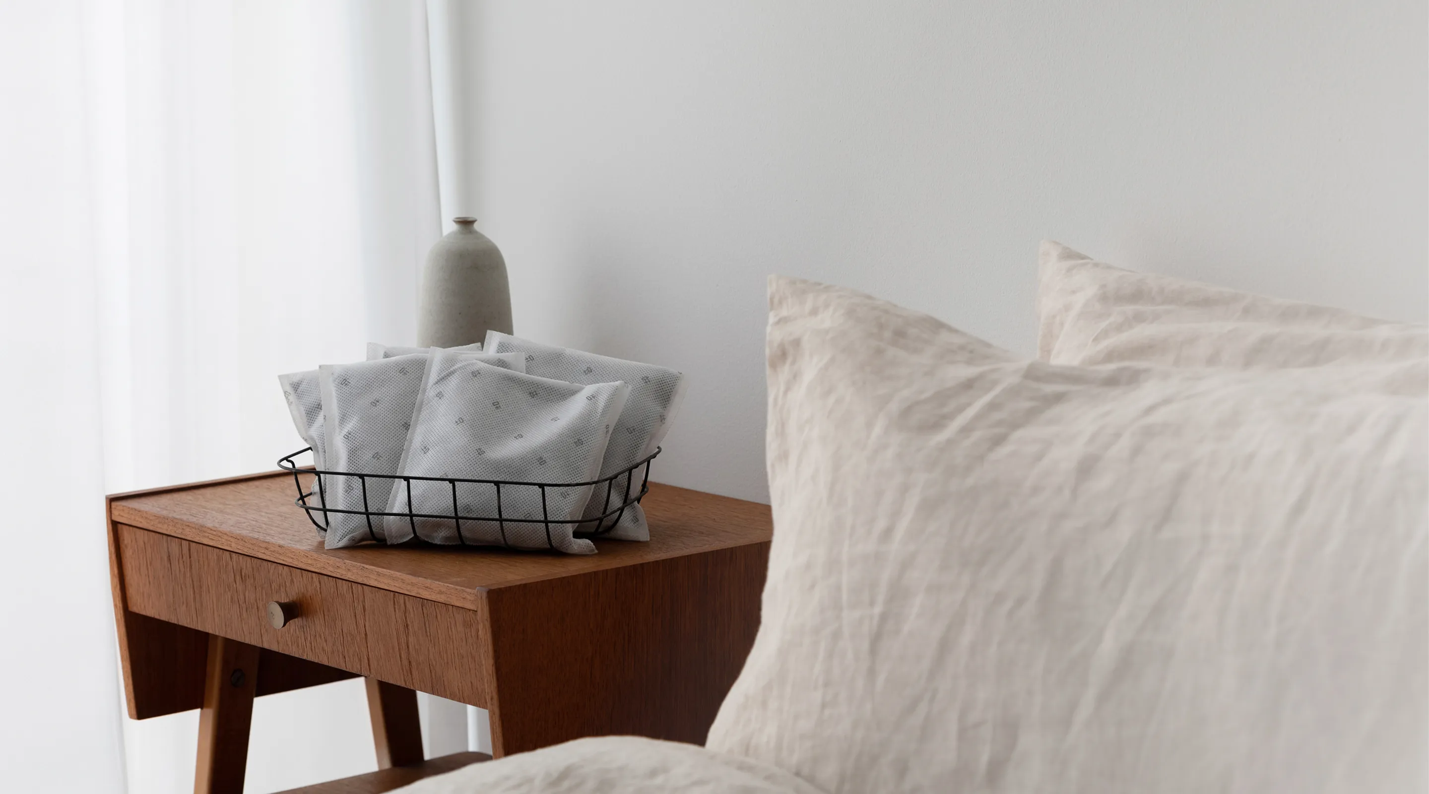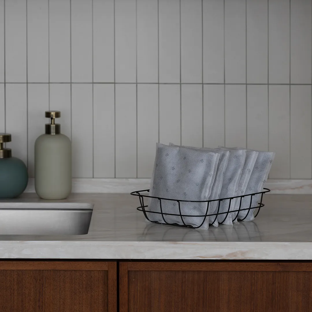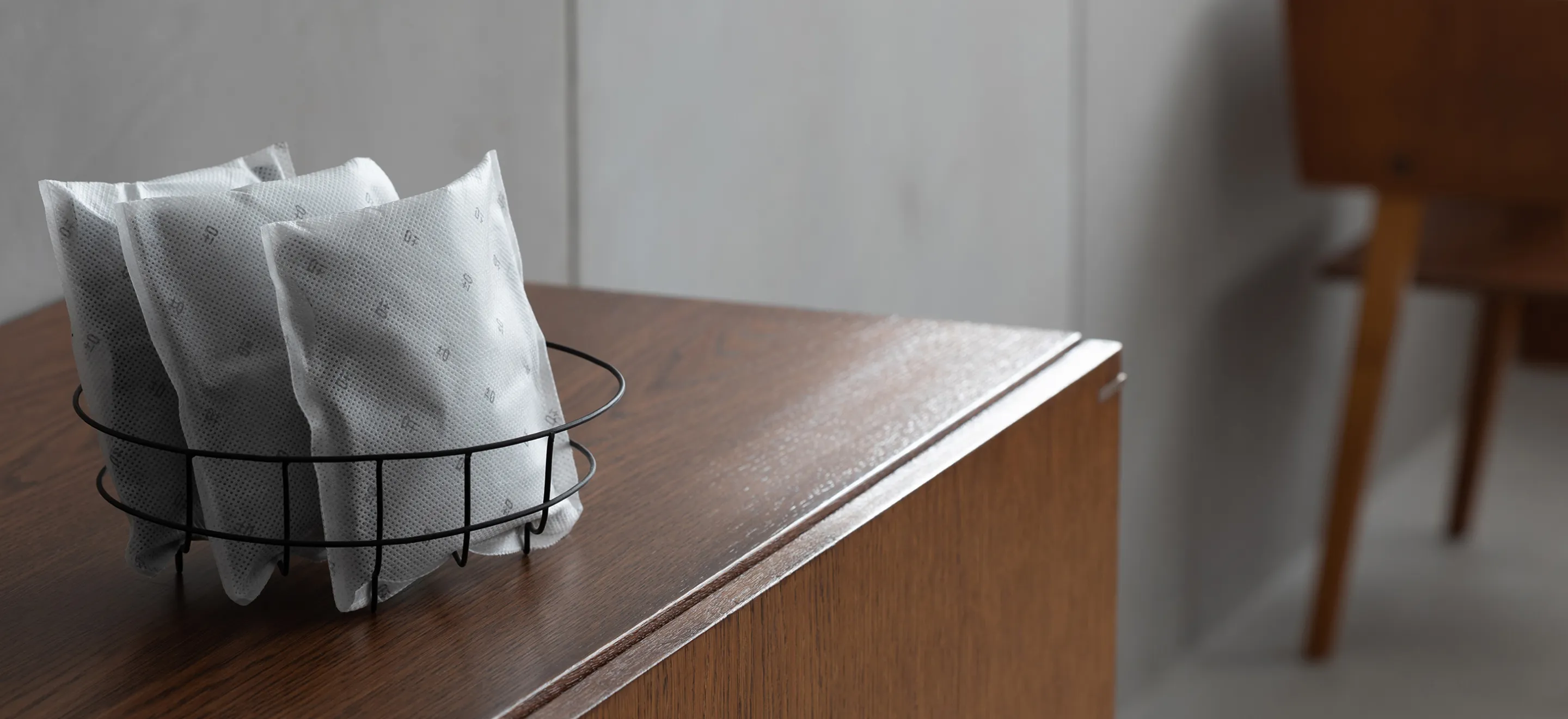 上部はメッシュ仕立てで、収納中も炭の働きを妨げません。