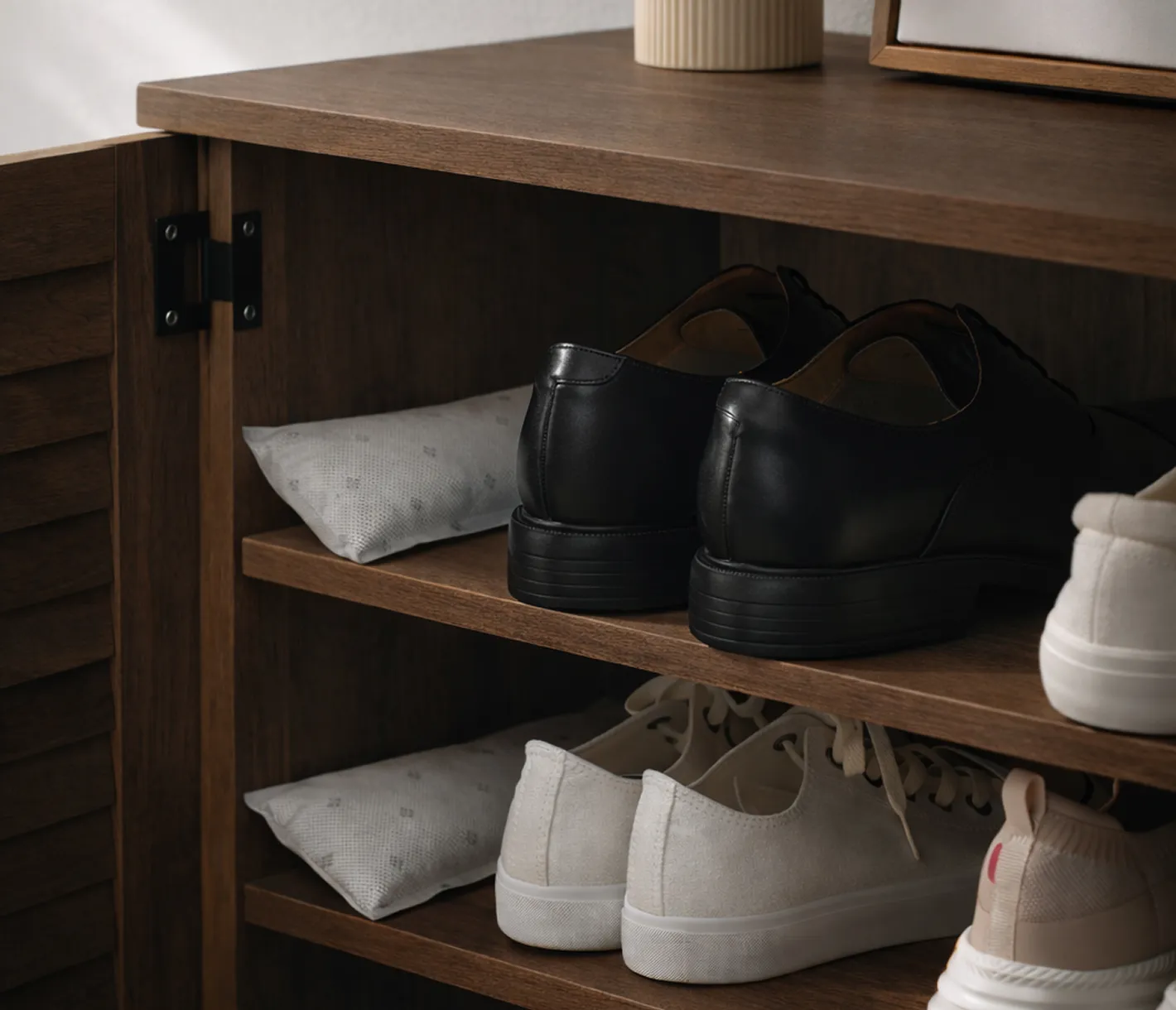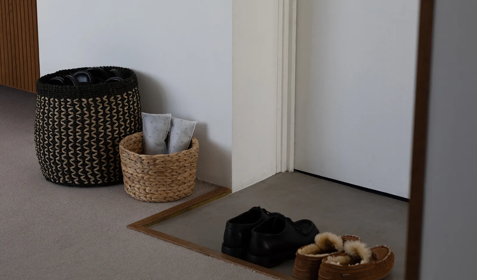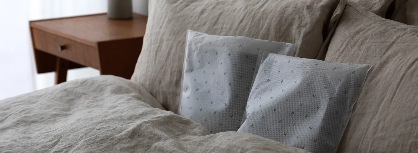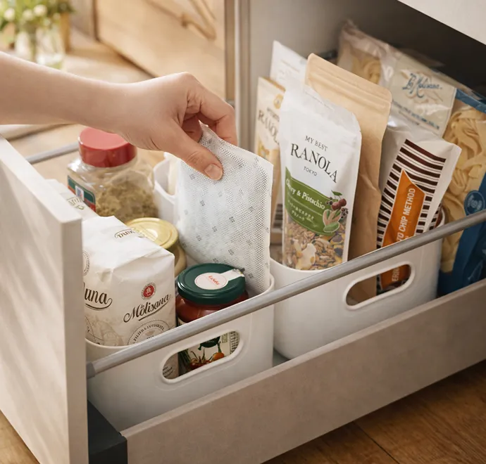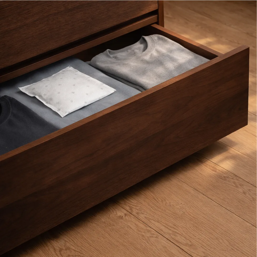 上部はメッシュ仕立てで、収納中も炭の働きを妨げません。